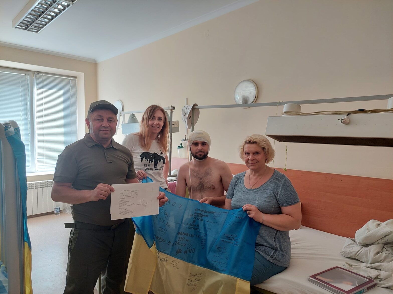 Члени нашої команди відвідали в одному з військових медичних госпіталів західної України , сапера – Євгена Л. Він на війні з 2015 року.Поранення отримав в Мар’їнці. Російська граната черканула каску і взірвалась за спиною. Англійська каска розлетілась , але врятувала життя бійцю. В голову українського бійця була вставлена пластина.Команда ГО,,Галицькі Сурми” вдячна всім , хто долучиіся до оплати пластини:Надія Краснюк – 50%.Віктор Коцай – 25%.Елла Коцай – 20%.Пані Ольга(США) – 5%.Eugene is a soldier in the Ukrainian army. Sapper, gunner. He has been at war with russia since 2015. A grenade exploded near his head. A plate was inserted into his head. He will go to war again.