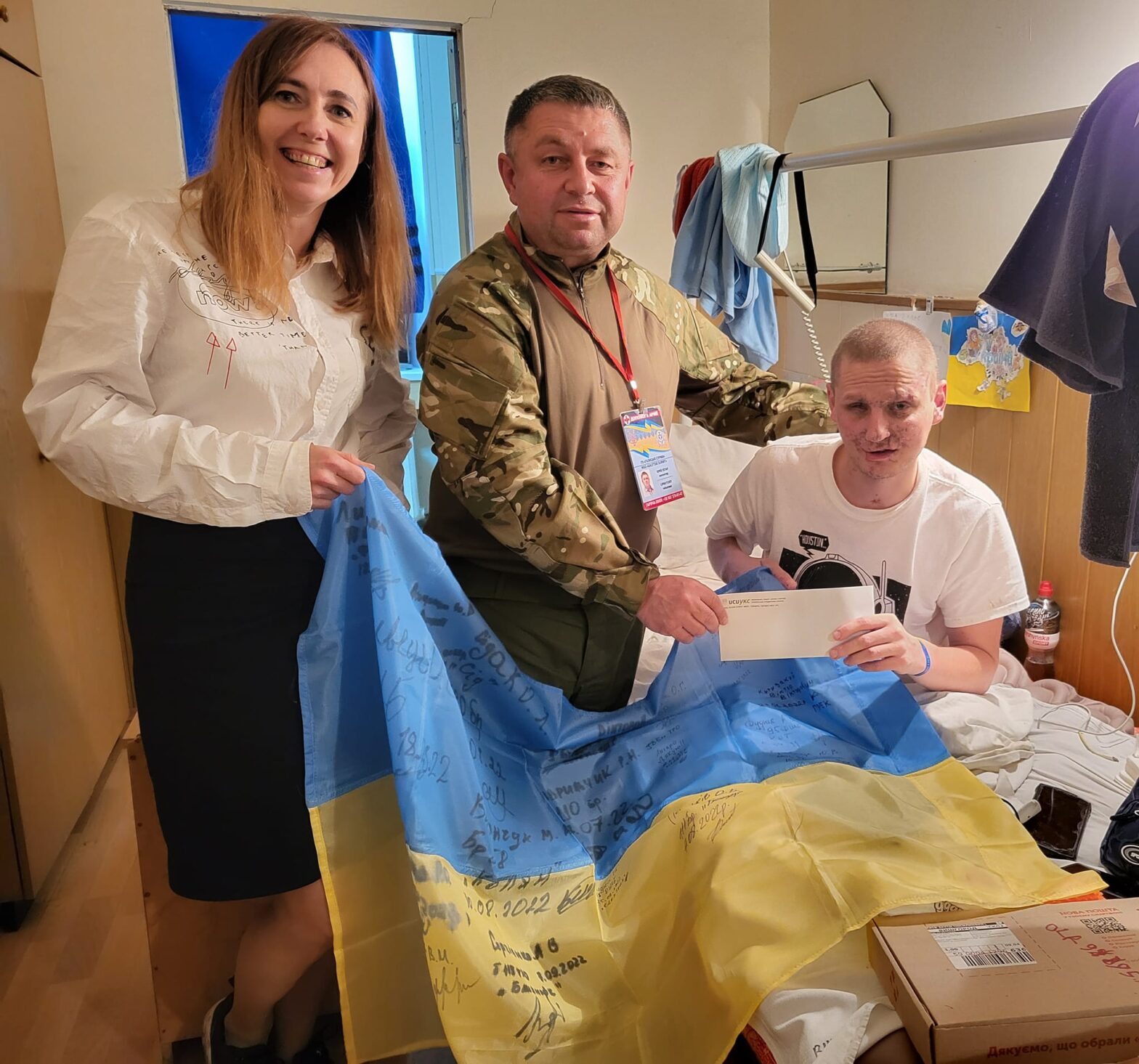 Владислав – гранатометник в ,,Холодному Ярі”(93 бр.). На війну з росією пішов 1.11.21.А ранком о 6:30 год. 24 лютого першим зустрів російську армію біля Охтирки що на Сумщині. Тоді він з побратимами зупинив колону з 25 одиниць техніки.6.06.22 – отримав важке мінно-вибухове поранення під Ізюмом. Коли на новій позиції копали окопи наш бієць зняв броніжилет , і тут прилетіла російська ракета. Її уламок пошматував спину.Далі пішли госпіталі. Ноги працюють погано , тому потрібна довготривала реабілітація.Юного героя відвідала наша команда в одному з госпіталів Західної України , і вручила одноразову фінансову допомогу в рамках проєкту ,,UCU Helps Ukraine”. Ми подякували Владиславу за сміливість і вірність нації.29 вересня нашому герою буде 25 років. Vladyslav is a soldier of the Ukrainian Army, a grenade launcher. He lived in Bahmut.1.11.2021 – went to war with russia. He is in brigade No. 93.6/6/2022 – he had a back injury. A russian rocket did it. His legs don’t work. Our team gave the soldier financial assistance from the “UCU Helps Ukraine” project. He will be 25 years old on September 29.